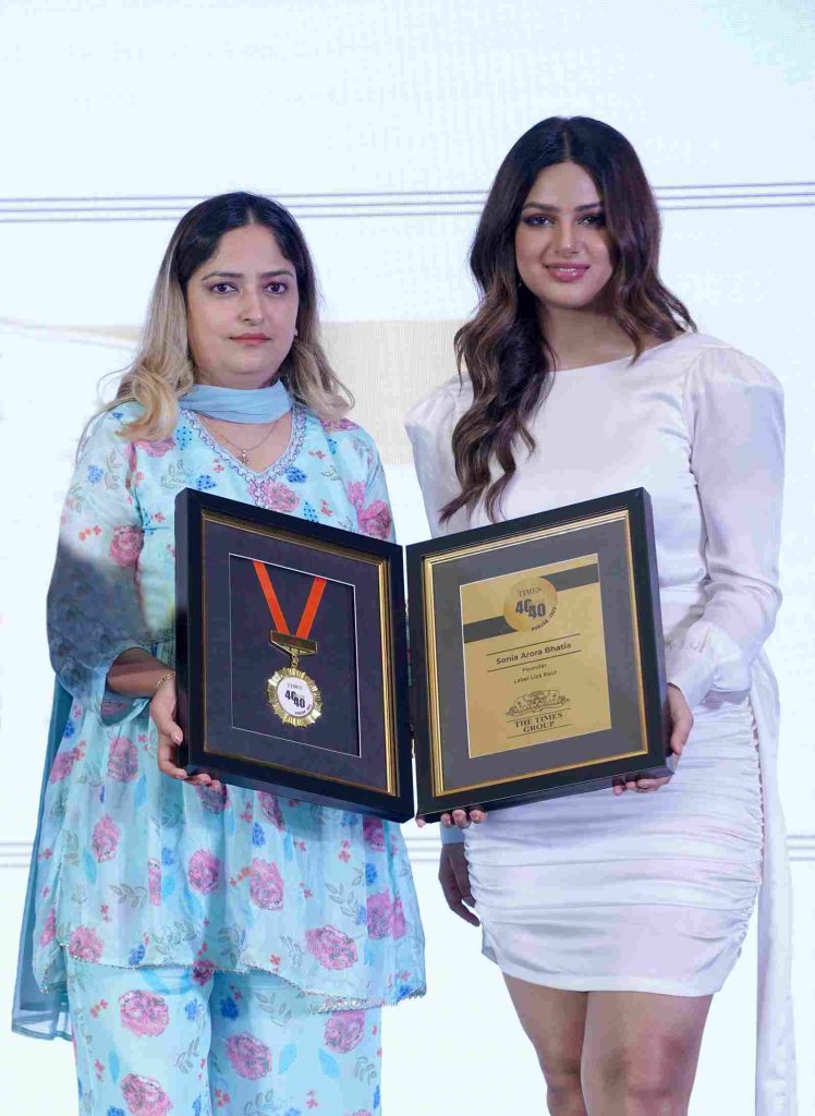 The proud moment for Team LIZA KAUR… Awarded by @harnaazsandhu_03 Harnaaz Kaur Sandhu at @ 40 under 40 event organised by @timesofindia 2023.